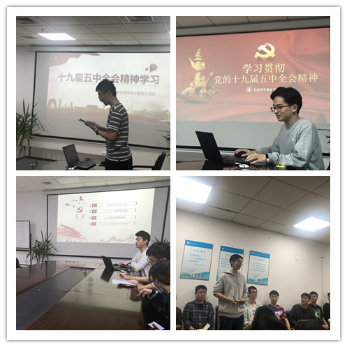 为提高党员的思想意识,强化理论武装,凝聚共奋意识,11月18日信电学生党支部在石麟902-1举行了学习十九届五中全会精神的主题党日活动。支部全体党员参加,活动主要有两部分内容,第一部分是十九届五中全会精神学习分享会,第二部分是党风廉政专题学习会。