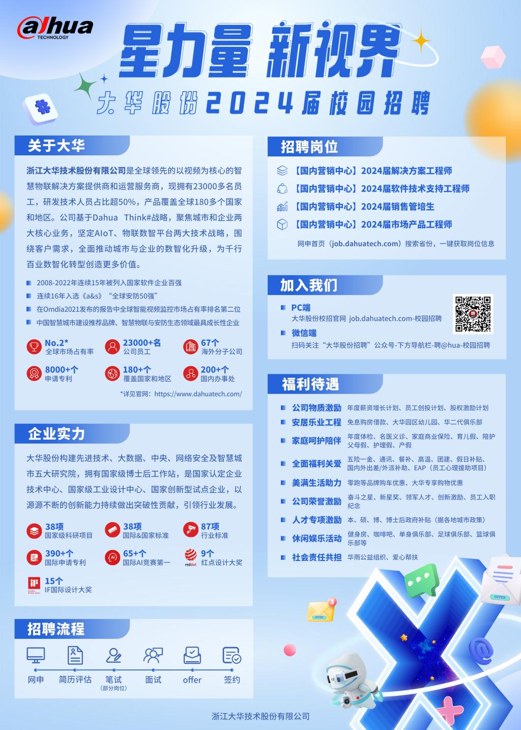 销售管培生/市场产品工程师等(大量岗位持续开放中,其他岗位详情见校招官网:job.dahuatech.com)