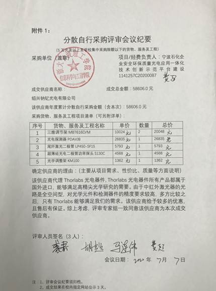 信息科学与工程学院全空间型中红外激光器平台分散自行采购项目成交结果的公示
