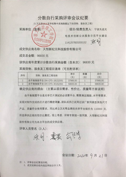 信息科学与工程学院自平衡隔振平台分散自行采购项目成交结果的公示