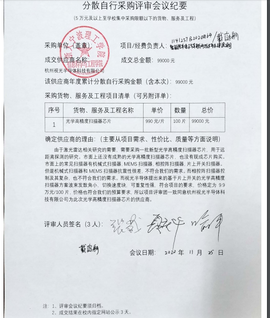信息科学与工程学院光学高精度扫描芯片分散自行采购项目成交结果的公示