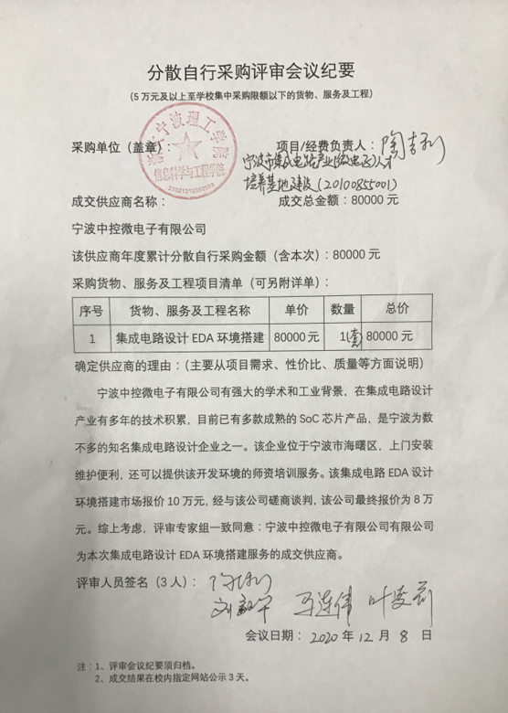 信息科学与工程学院集成电路设计EDA环境搭建分散自行采购项目成交结果的公示