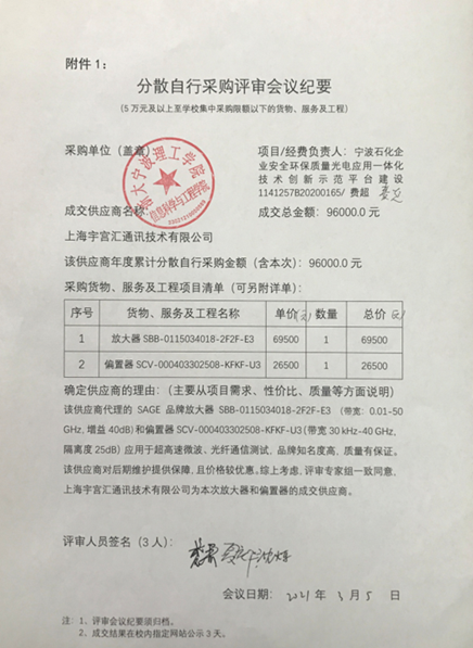 信息科学与工程学院放大器和偏置器分散自行采购项目成交结果的公示