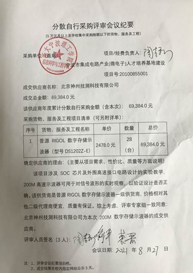 信息科学与工程学院数字示波器分散自行采购项目成交结果的公示