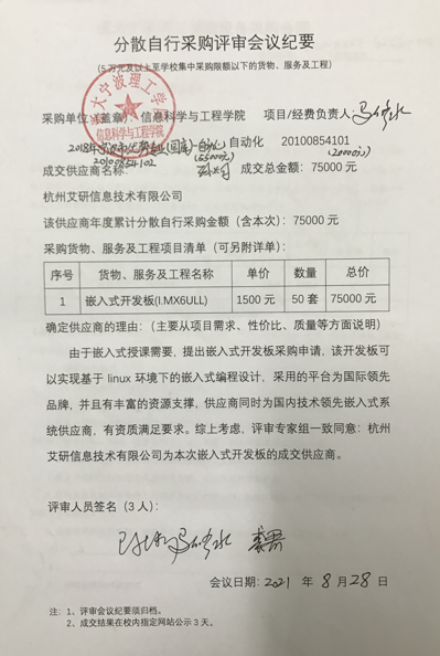 信息科学与工程学院嵌入式开发板分散自行采购项目成交结果的公示