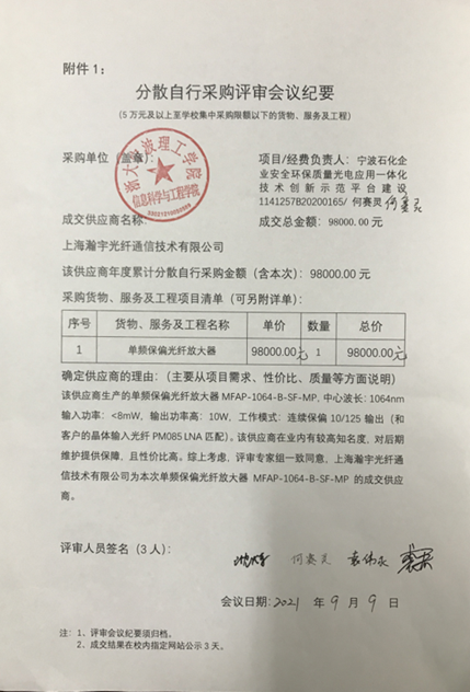 信息科学与工程学院单频保偏光纤放大器分散自行采购项目成交结果的公示
