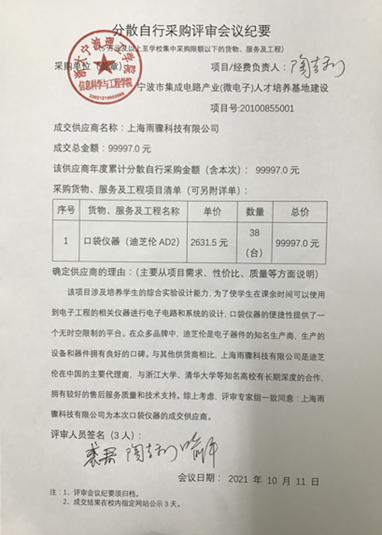 信息科学与工程学院口袋仪器分散自行采购项目成交结果的公示