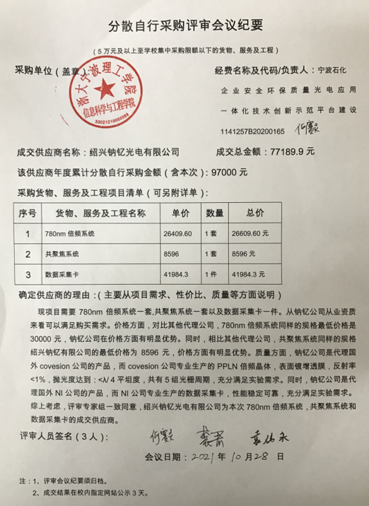 信息科学与工程学院780nm倍频系统、共聚焦系统及数据采集卡分散自行采购项目成交结果的公示