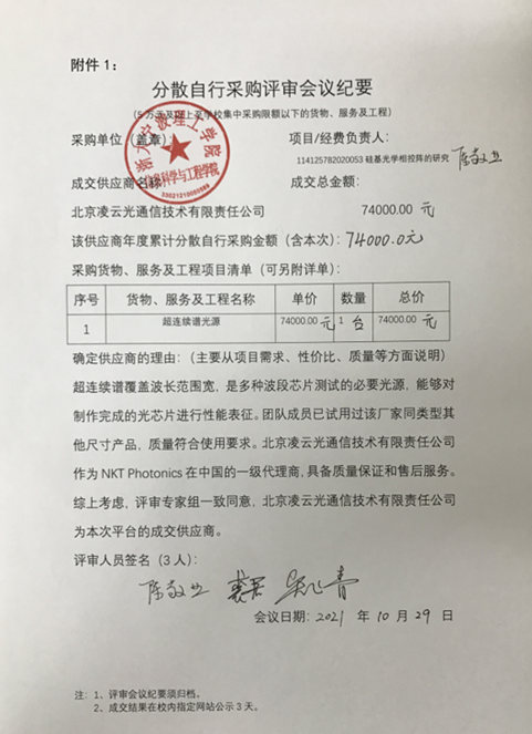信息科学与工程学院超连续谱光源分散自行采购项目成交结果的公示