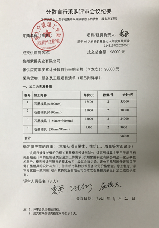 信息科学与工程学院石墨模具设计制作加工服务分散自行采购项目成交结果的公示