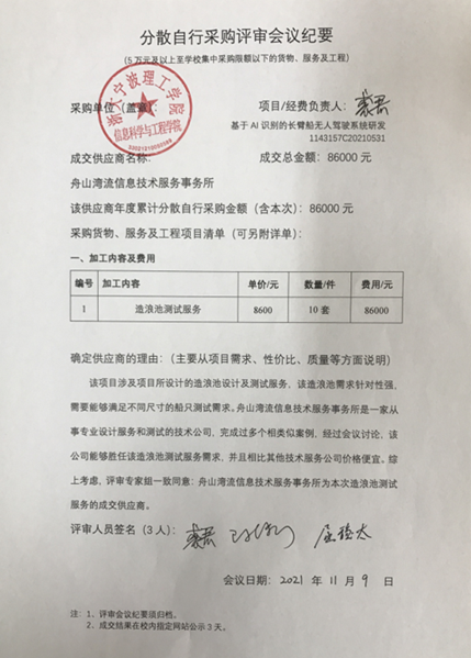 信息科学与工程学院造浪池测试服务加工服务分散自行采购项目成交结果的公示