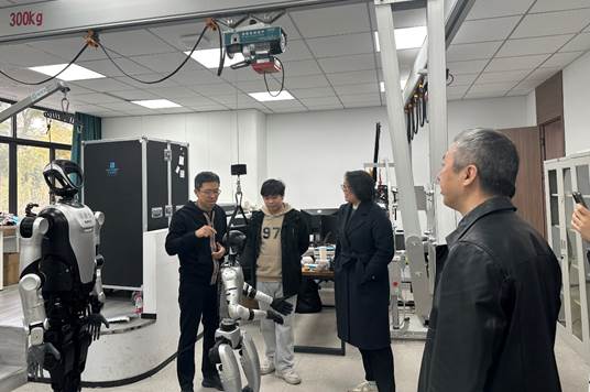 调研首站抵达宁波工程学院机器人学院。在机器人学院张浩向副院长及相关负责人陪同下,调研小组参观了一系列机器人实验室,现场观摩了综合创新实验设备配置与学生创新实践项目。随后,双方围绕“产业学院”的建设模式与运行机制、以及“卓越工程师班”的人才培养方案、校企协同育人实践等核心议题进行了座谈交流。机器人学院在深化产教融合、对接区域产业需求、提升学生工程实践能力方面的创新举措与显著成效,为调研小组提供了宝贵的经验借鉴。